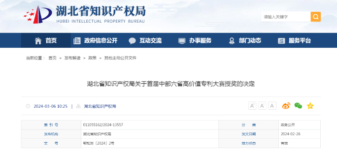 據(jù)悉,首屆中部六省高價(jià)值專利大賽由湖北省人民政府指導(dǎo),湖北、山西、安徽、江西、河南、湖南省知識(shí)產(chǎn)權(quán)局聯(lián)合主辦,于2023年9月1日在武漢正式啟動(dòng),經(jīng)初賽、復(fù)賽、決賽,最終評(píng)選出一等獎(jiǎng)30名、二等獎(jiǎng)39名、三等獎(jiǎng)48名。