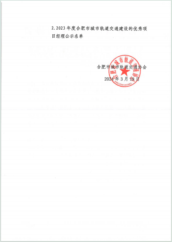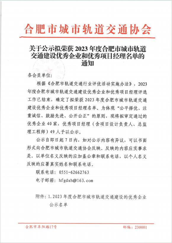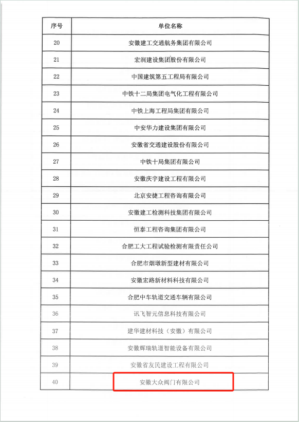 近日,合肥市軌道交通協(xié)會發(fā)布關(guān)于公示擬榮獲2023年度合肥市城市軌道交通建設(shè)優(yōu)秀企業(yè)和優(yōu)秀項(xiàng)目經(jīng)理名單的通知,安徽大眾閥門集團(tuán)榮獲殊榮,不忘初心,再創(chuàng)佳績。