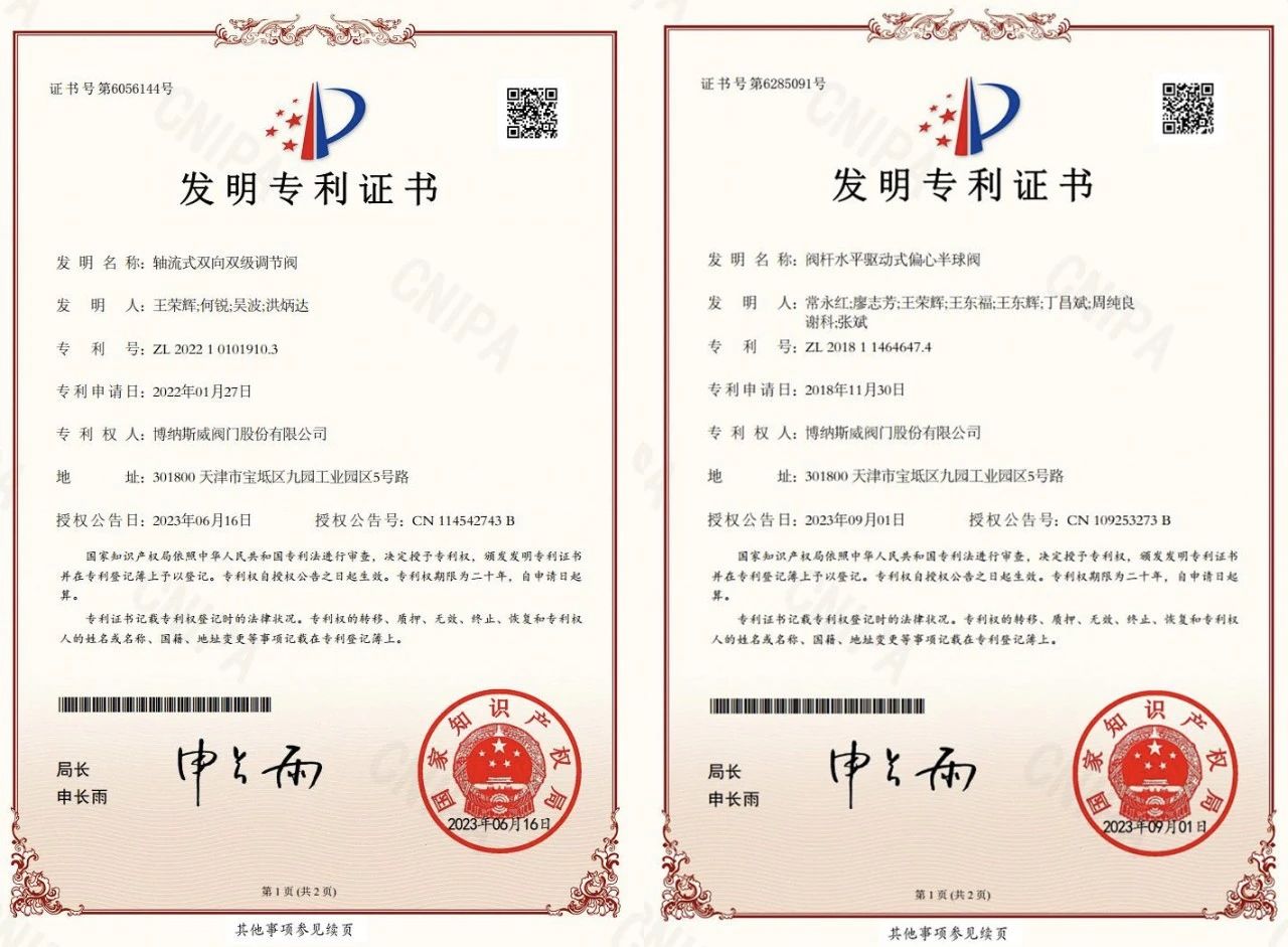 博納斯威閥門股份有限公司(以下簡(jiǎn)稱“博納斯威”)堅(jiān)持以創(chuàng)新為企業(yè)發(fā)展動(dòng)力,致力于閥門領(lǐng)域的技術(shù)革新。迄今為止,博納斯威獲得專利總數(shù)量達(dá)到276項(xiàng),其中發(fā)明專利27項(xiàng),實(shí)用新型185項(xiàng),外觀專利64項(xiàng)。