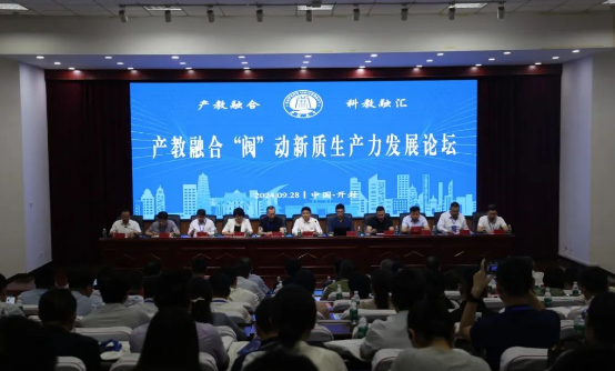 9月28日上午,開封大學(xué)閥門產(chǎn)業(yè)學(xué)院舉辦以產(chǎn)教融合、科教融匯為主題的“閥”動新質(zhì)生產(chǎn)力發(fā)展論壇。來自全國各地的高校院所、行業(yè)協(xié)會及企業(yè)等專家學(xué)者齊聚一堂,共敘閥門產(chǎn)業(yè)培育發(fā)展新質(zhì)生產(chǎn)力的機(jī)遇與挑戰(zhàn),共謀推動閥門產(chǎn)業(yè)高質(zhì)量發(fā)展。開封大學(xué)校長王德如致辭。