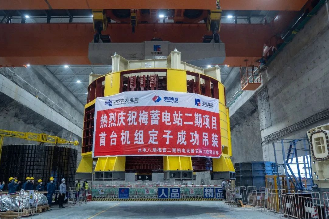 2024年11月8日,廣東梅州抽水蓄能電站二期首臺(tái)機(jī)組定子吊裝完成,吹響了向明年5月底首臺(tái)機(jī)組投產(chǎn)發(fā)電目標(biāo)的沖鋒號(hào)角。