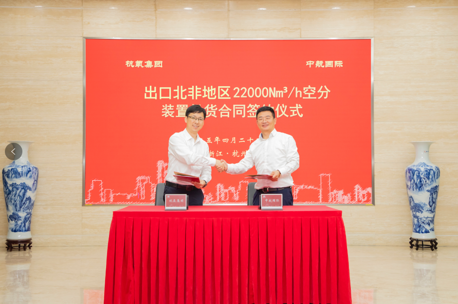 4月22日,杭氧與中航技杭州公司簽署合作協(xié)議,為北非地區(qū)提供2.2萬空分項目,將為該地區(qū)規(guī)模最大的鋼鐵聯(lián)合體注入全新活力,對北非地區(qū)工業(yè)發(fā)展產生深遠影響。