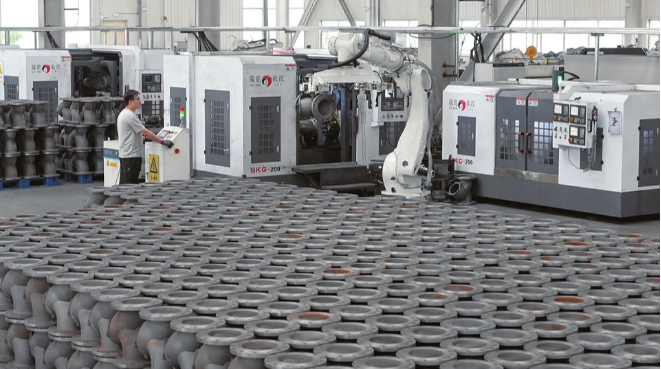 7月10日,山西熔焱閥門制造有限公司的生產(chǎn)車間內(nèi),智能化設備全速運轉(zhuǎn),工人加緊趕制訂單。該公司投資1.8億元建設年產(chǎn)8萬噸閥門機加工項目,通過引入數(shù)控機床和機械臂機器人,實現(xiàn)全流程智能化生產(chǎn),效率提升40%,人力成本降低60%。企業(yè)從單一毛坯鑄件加工轉(zhuǎn)向多元化商品生產(chǎn),產(chǎn)品附加值躍升至每噸8500元,暢銷天津、福建及海外市場。