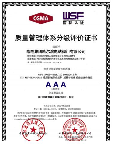 近日,中國通用機械工業(yè)協(xié)會聯(lián)合北京世標認證中心有限公司對哈電集團哈爾濱電站閥門有限公司進行了“通用機械質(zhì)量管理體系分級評價”工作。
