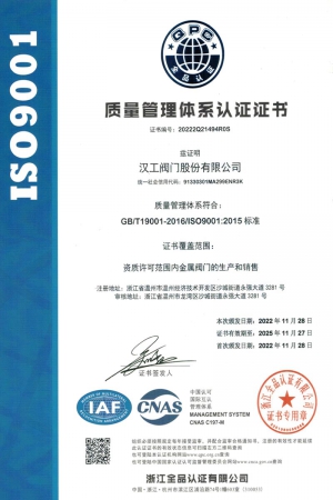 公司先后通過了ISO9001:2008國際質(zhì)量管理體系認(rèn)證,ISO4001:2004環(huán)境管理體系認(rèn)證,GB/T28001-2001職業(yè)健康安全管理體系認(rèn)證,中華人民共和國特種設(shè)備制造許可認(rèn)證(TS),中國石油和石油化工設(shè)備工業(yè)協(xié)會(huì)團(tuán)體會(huì)員單位,中國化工集團(tuán)公司合格供應(yīng)商成員單位,中國華電集團(tuán)公司集團(tuán)級供應(yīng)商成員單位,中國華能集團(tuán)公司供應(yīng)商,中國城市燃?xì)鈪f(xié)會(huì)團(tuán)體會(huì)員,中國建筑金屬結(jié)構(gòu)協(xié)會(huì)會(huì)員單位,中國著名品牌等這一系列的質(zhì)保體系是漢工閥門在設(shè)計(jì)、開發(fā)、制造、銷售、服務(wù)于一體的后盾力量,確保了漢工閥門的質(zhì)量與品牌。